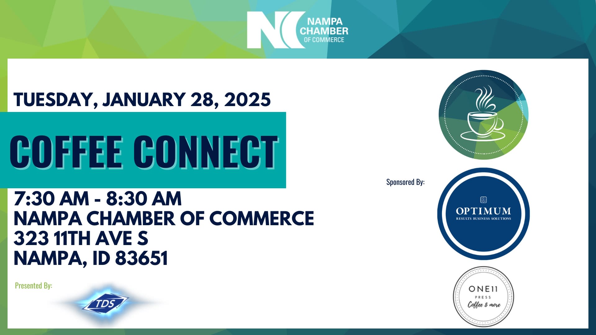 Thanks to our generous sponsors, Coffee Connect is free to our Nampa Chamber members. Future members can call the Chamber office to be added to the guest list.