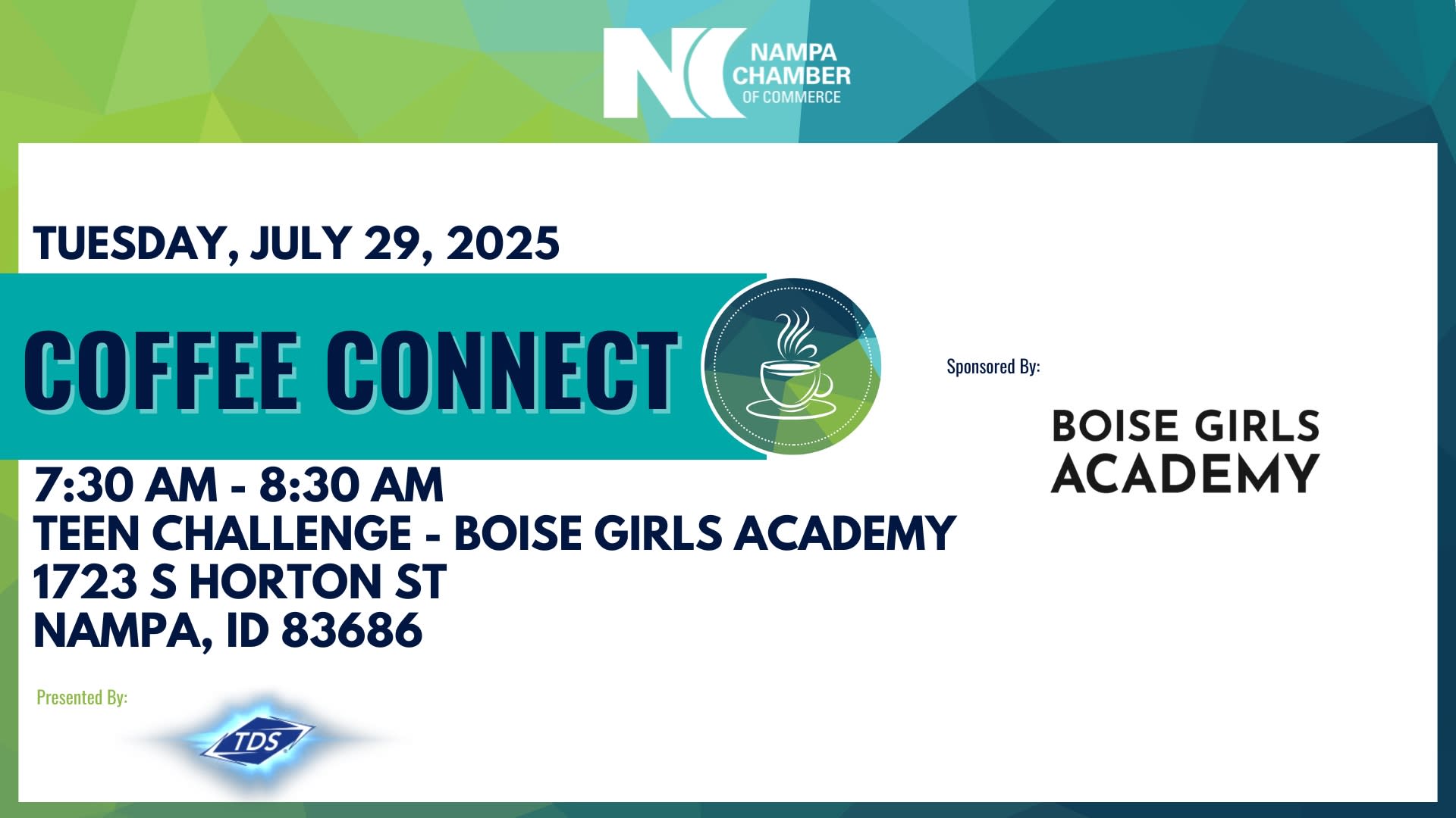 Thanks to the generosity of our sponsors, Coffee Connect is free for Nampa Chamber members. Not yet a member? Future members are welcome to join by calling the Chamber office to be added to the guest list. We'd love to meet you!