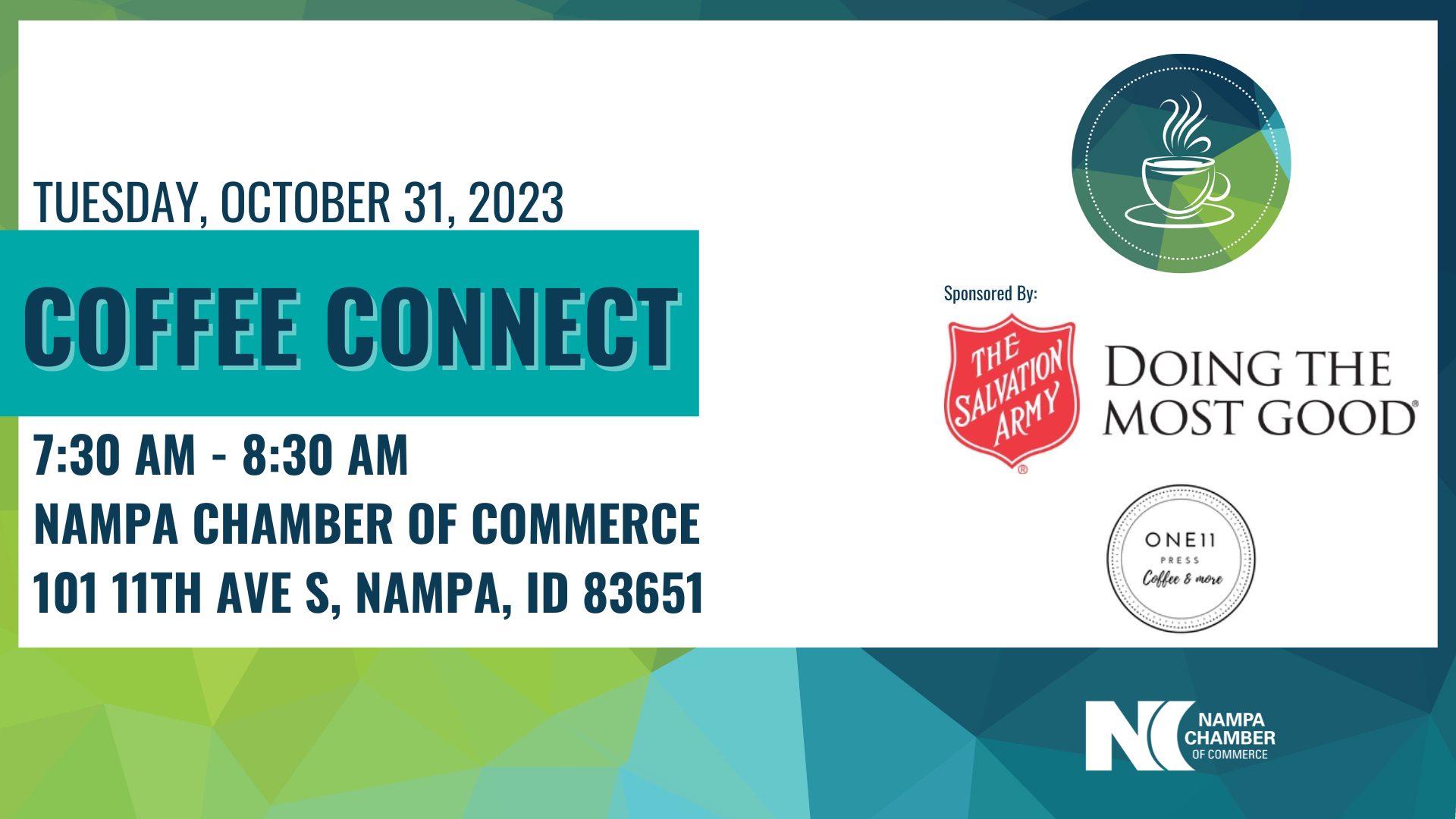 Thanks to our generous sponsors, Coffee Connect is free to our Nampa Chamber members. Future members can call the Chamber office to be added to the guest list.