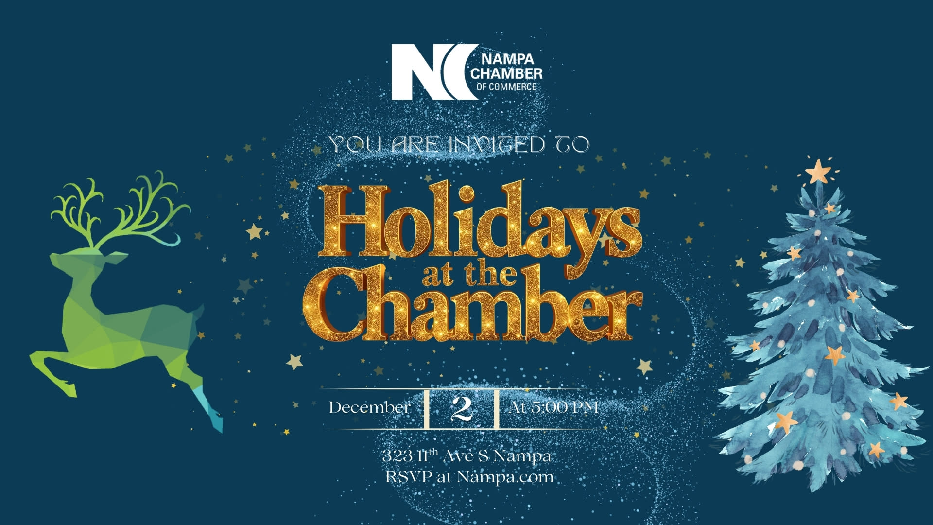 The holidays are a time to gather, celebrate, and share gratitude — and we can’t wait to do just that with our members and friends of the Nampa Chamber. Join us on Tuesday, December 2nd, from 5:00–7:00 PM at the Chamber office for an evening of festive cheer.