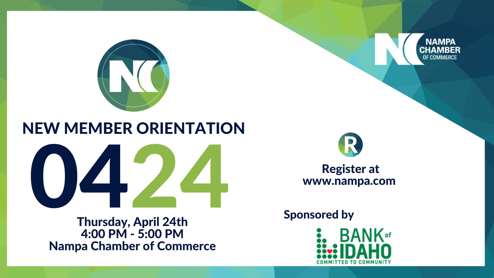 Join us for our New Member Orientation, where we'll explore the many advantages of being a Chamber member. At the Nampa Chamber, we value connecting people to business and community, and this event is designed to help you maximize your membership benefits. It's also a great opportunity to meet Chamber staff, connect with our Board of Directors and Ambassadors, and build relations with other members.