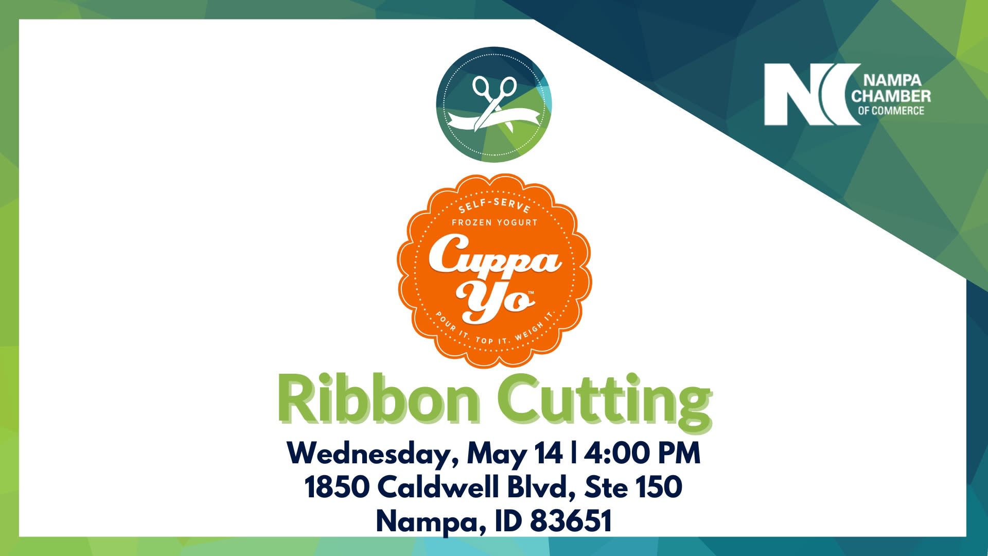 The Nampa Chamber & our Ambassador Committee invite you to celebrate the ribbon cutting for Cuppa Yo Frozen Yogurt!